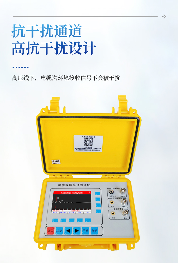 1、长度测试:断电状态下可以直接测试电缆的断线、短路故障距离长度。