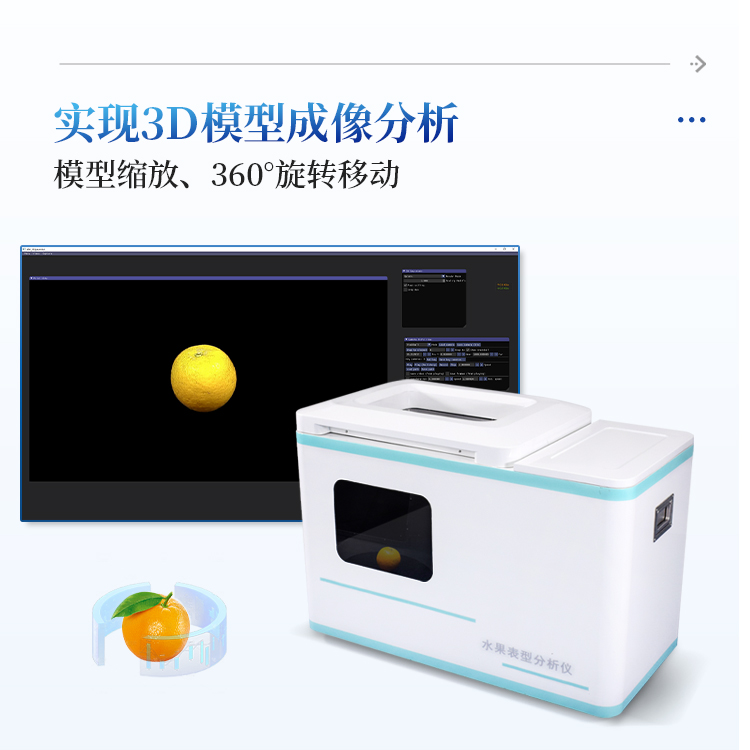 简要描述: 水果表型分析仪是根据图像识别、3D Gaussian Splatting等技术实现模型成像以及分析的。本产品使用了最新的AI成像分析技术,在多视角的条件下对苹果、橘子、梨、西瓜等水果进行扫描,通过生成3D点云图并动态绘制水果表面纹理等操作构建三维的水果模型。同时在进行模型成像过程中也会对水果的形态、纹理、颜色等特征进行分析。